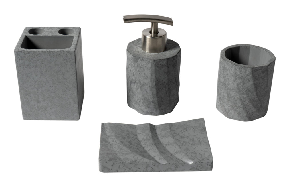 4 Piece Solid Concrete Gray Matte Bathroom Accessory Set