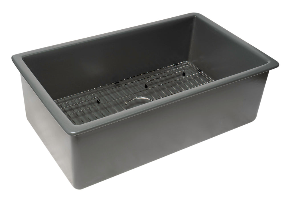 Grey Matte 32" x 19" Fireclay Single Bowl Undermount / Drop In Kitchen Sink w Grid