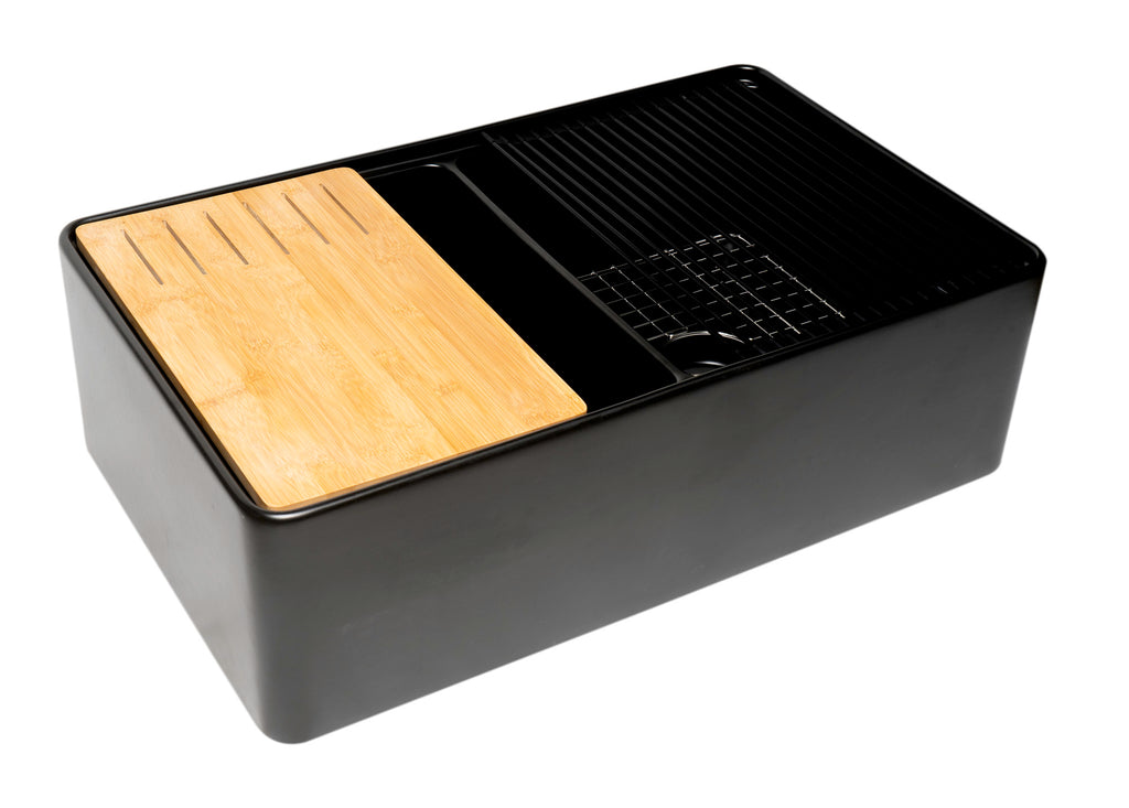 Black Matte Workstation 33" x 20" Double Bowl Step Rim Fireclay Farm Sink with Accessories