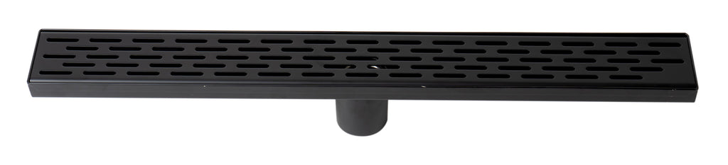 24" Black Matte Stainless Steel Linear Shower Drain with Groove Holes