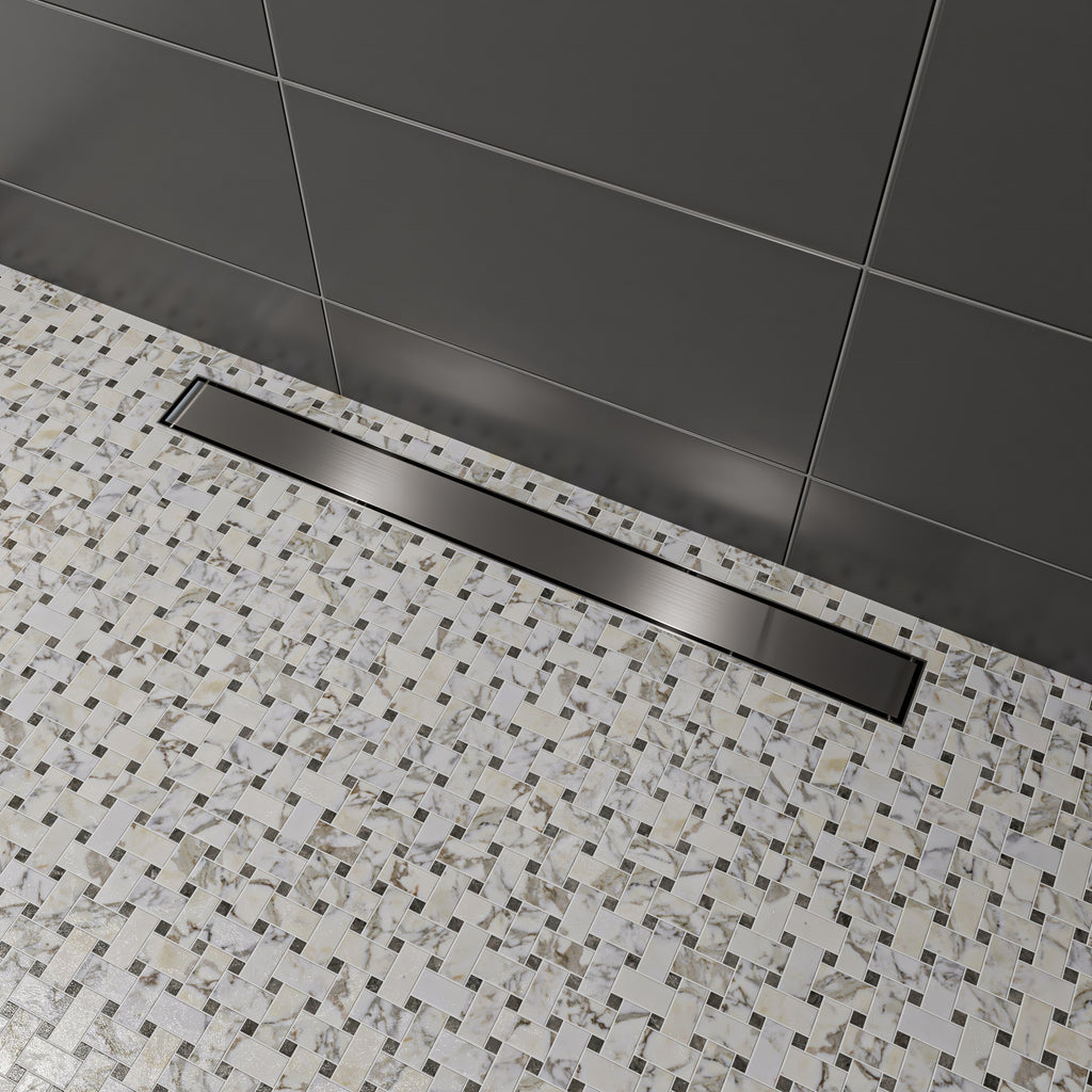 32" Modern Brushed Stainless Steel Linear Shower Drain with Solid Cover