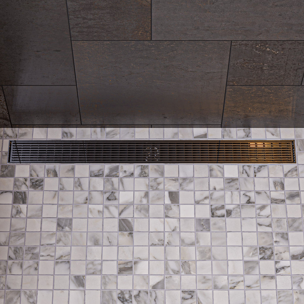 Extra large 47" shower drain allows you to create a one directional slope for extra large showers or for outdoor use. The stainless steel material is highly resistant to temperature variations and household cleaners and soaps. This unique style of shower drain provides you with the comfort of not standing directly over the drain while you shower, making your shower experience feel more hygienic and leaving your shower cleaner and dryer.