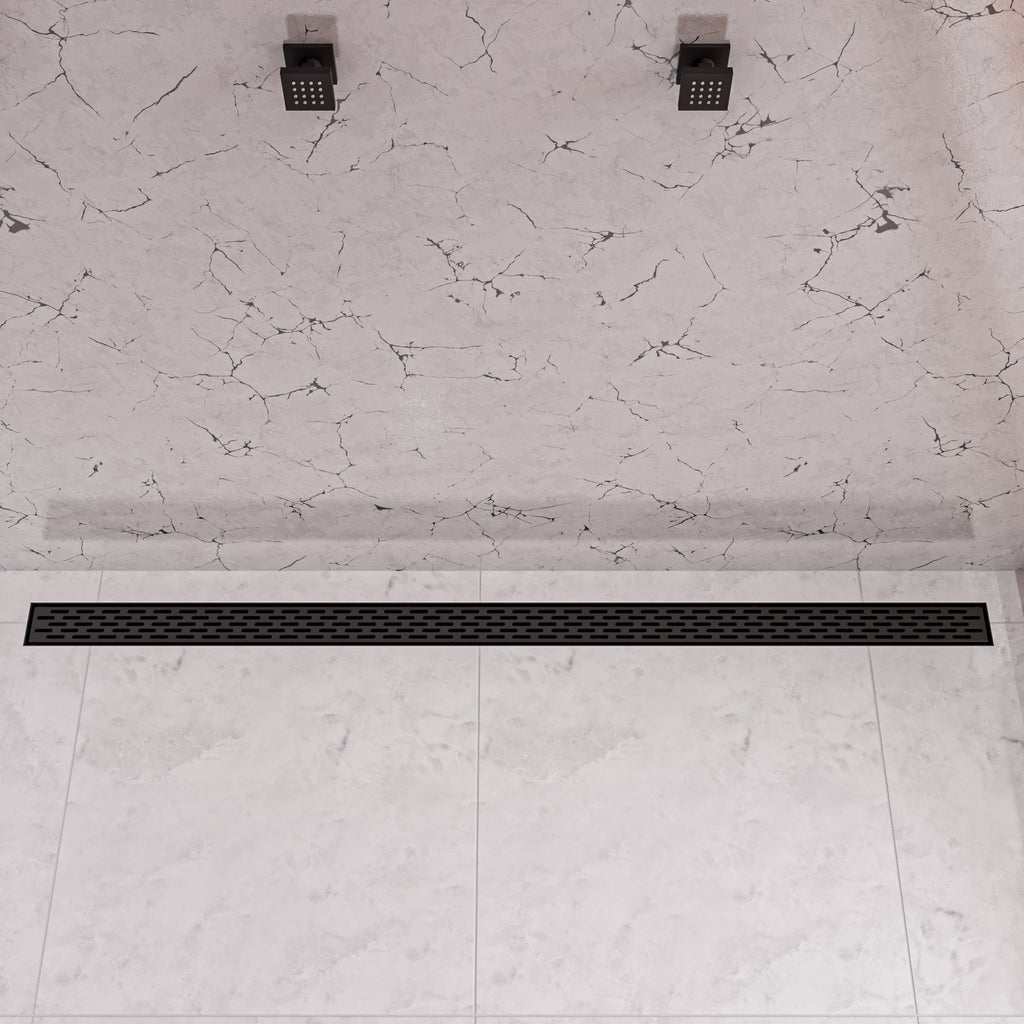 59" Black Matte Stainless Steel Linear Shower Drain with Groove Holes