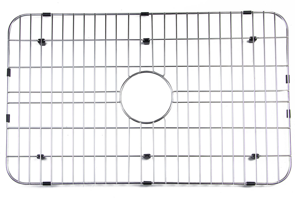 Protect your investment with this solid stainless steel grid that sits on the bottom of your fireclay sink. Protects the sink from nicks or cracks caused by heavy pots or pans dropped in, reduces the need for cleaning marks or stains at the bottom of the sink. This model also fits perfectly into the bamboo farm sink.