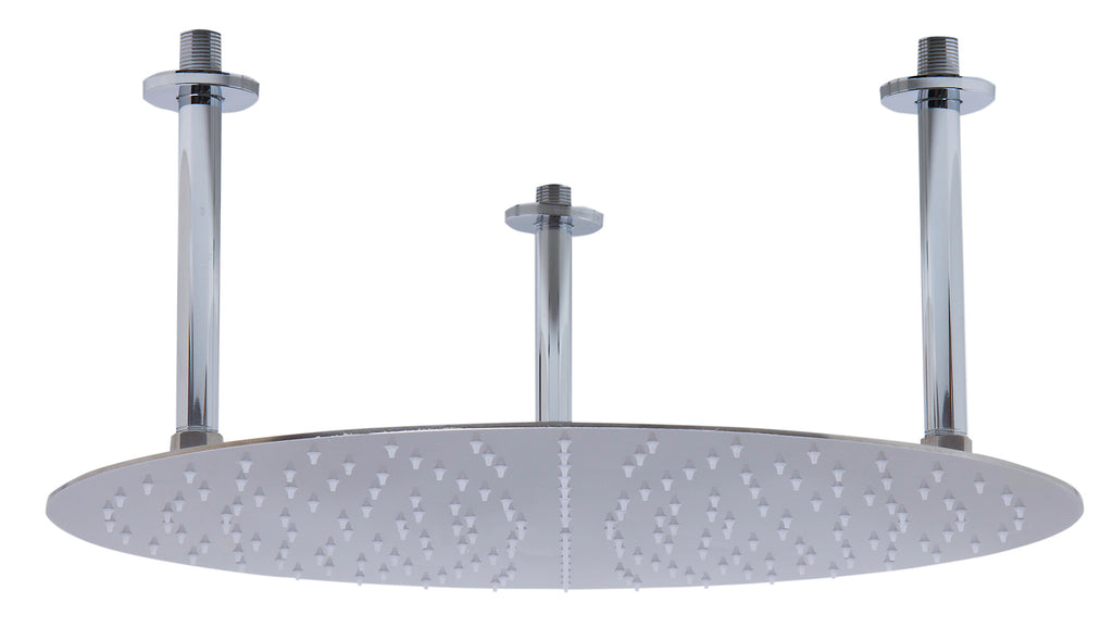 Transform your bathroom with this large 20 inch ULTRA THIN round rain shower head. You won't believe your eyes and neither will your next house guest. Enjoy the modern sleek thin design and be reassured that it's made of solid stainless steel unlike traditional rain shower heads made of brass.
