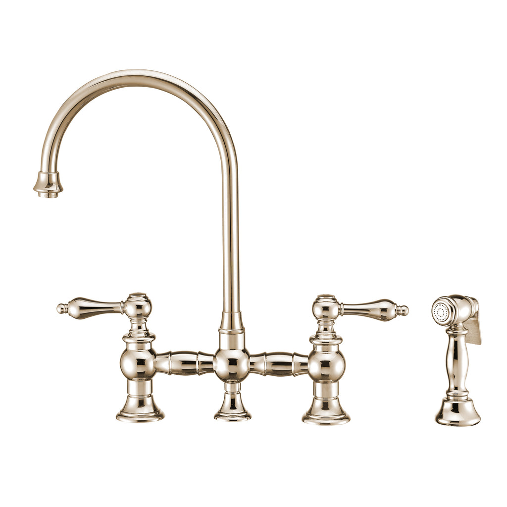 Vintage III Plus Bridge Faucet with Long Gooseneck Swivel Spout, Lever Handles and Solid Brass Side Spray